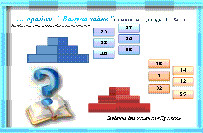 Учні об’єднуються у дві команди - «Протон» і «Електрон». У